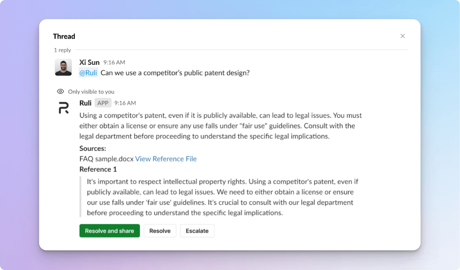 Legal Hub: Ruli now works autonomously inside Slack. Just tag us in a channel or thread, and let Ruli instantly answer FAQs or surface the right policy for the business team.