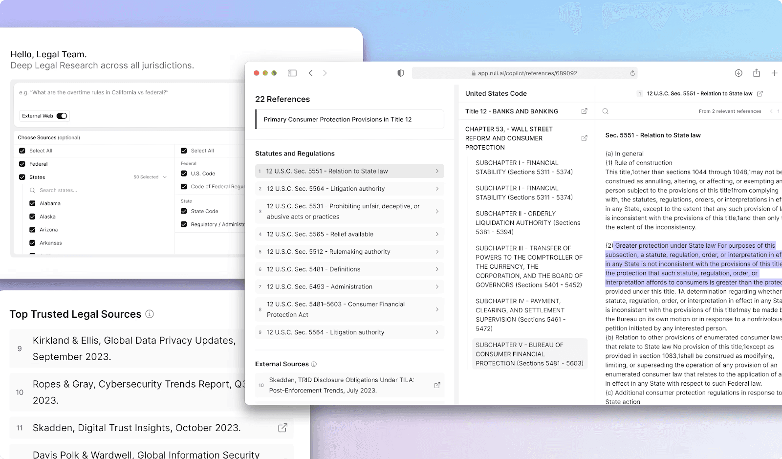 We’re also excited to share the upcoming launch of Legal Research mode in Ruli Assistant. This new feature will perform deep research analysis and provide side-by-side view of the analyzed legislative text, trusted curated sources, all within a single chat experience. In addition, we’re hosting more webinars and in person events on both coasts. Follow our LinkedIn page for updates.